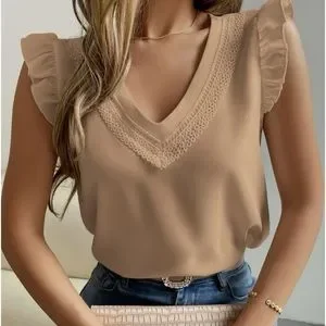 New V neck ruffle sleeve short sleeve top
