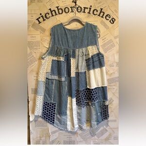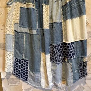 Free People Perfect Patchwork Denim Tunic Dress Distressed Lace Piecing Blue Ivory