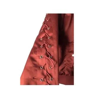 Forever 21 | Maroon satin bomber jacket lace up sleeves and back statement coat