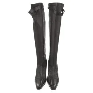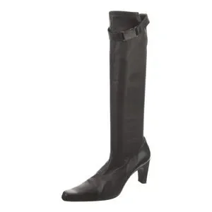 Coco Chanel NWOT Black Leather Boots Buckle at top Luxury Size10 will fit 91/2