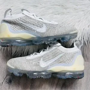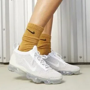 Made from at least 40% recycled materials by weight, the Nike Air VaporMax 2021 FK is airy and easy to wear with superstretchy, recycled Flyknit fabric (plus a soft collar that sculpts your ankle). The stitched-on Swoosh and recycled TPU heel clip add a splash of intrigue as you float down the streets on incredibly soft VaporMax cushioning.
