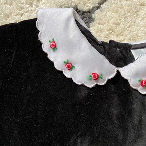 Very good condition. No holes or stains. Snap crotch. Rosette detail to collar.