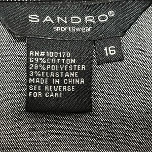 SANDRO Fit ‘n Flare Pieced/Tiered MIDI SKIRT - Black Denim Animal Print - NWOT
