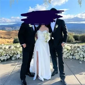 - BEAUTIFUL wedding dress with a slit and mini skirt underneath