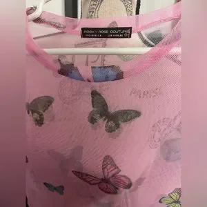 Dolls Kill sheer pink butterfly tee