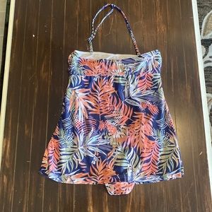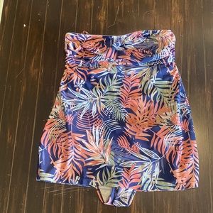One piece bathing suit with skirt. Can be worn Strapless or with strap. SizeS