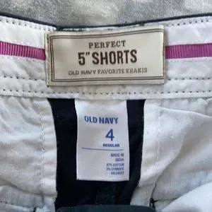Old Navy Black Favorite Khakis Perfect 5’Shorts. Size 4 Regular. 97% Cotton snd 3% Spandex.
