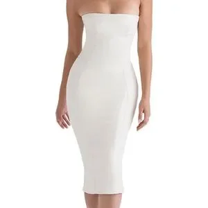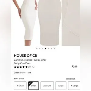 HOUSE OF CB Camilla Strapless Faux Vegan Leather Body-Con Dress $269 Ivory Small