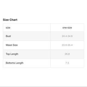 Size: see last photo for reference. Please check the measurements before placing the order since sizing may be different between brands. This set comes in One Size only.