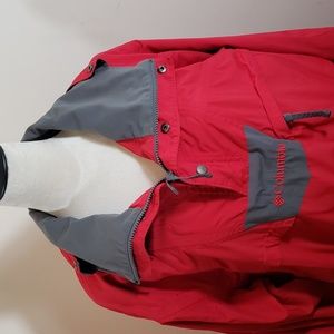 Columbia Men's Waterproof Red and Gray 3/4 Zip Pullover Jacket/Windbreaker, Size Large, 3 Pockets