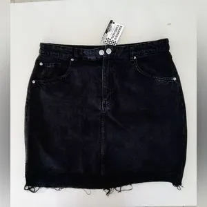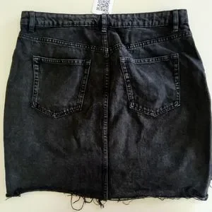 Super cute black wash denim skirt in great condition. Freyed hem, double button allows you to adjust waist width. Size 14.