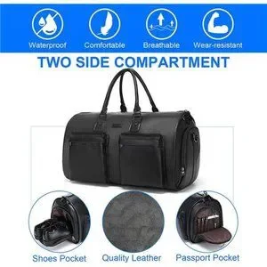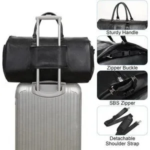 Convertible Leather Garment Bag, Carry on Garment Bags Travel Waterproof Duffel