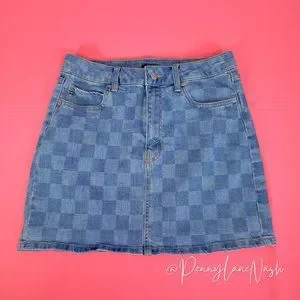 Wild Fable Super-High Rise Denim Mini Skirt Blue Check