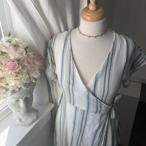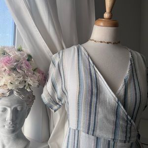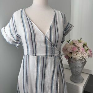 Lovely feminine dress, gently used from Forever 21. Dress is in excellent condition and features a belt with rayon lining.