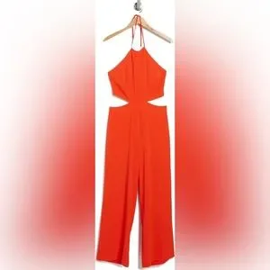 Elevate your wardrobe with this halter-neck jumpsuit that is styled with flirty side cutouts and breezy legs.