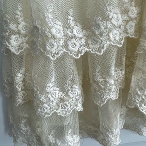 Beautiful cream lace button front vest, overtop. 60% polyester, 40% cotton. Floral appliqué and flared lower half. Perfect with jeans or as a layered accent. Brand new never worn.