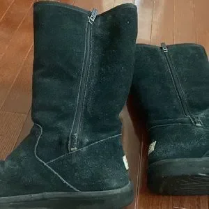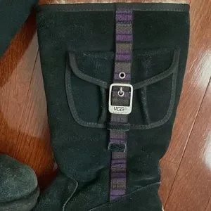 UGG Australia Tall Black Boots with Belted Purple Side Stripe and Side Pocket