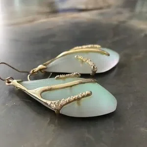 Alex Bittar Blue Teal Seafoam Lucite Crystal Encrusted Gold Branch Drop Earrings