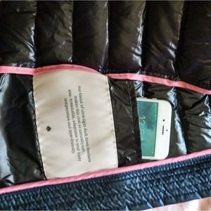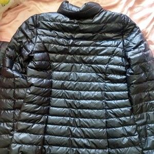 New with tags. Beautiful Navy Packable Down Jacket with hood. Hood folds into collar. Jacket easily packs into separate pouch. XS, but is too long for my 5'2 frame.