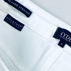 NYDJ Relaxed Straight Leg Jeans in Optic White. Offers a slightly slouchy fit but still polished, featuring an exclusive Lift-Tuck® technology that slims from within.