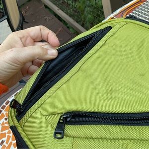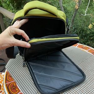 Like new neon green black bag man purse school bag work bag office bag travel bag