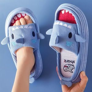 JAWS Blue Shark Slippers | Women Kids Cotton Home Indoor Shoes Winter