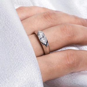 #Certified 1ct. t.w. Moissanite Diamond Mens Marquis Cut Wedding Band Ri…