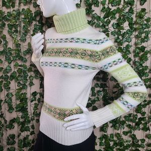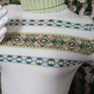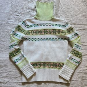 Vintage Women's Colorful Alpine Nordic Turtleneck Knit Sweater