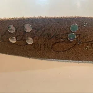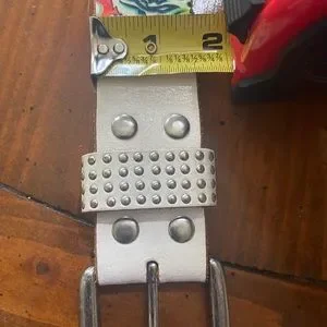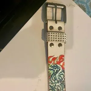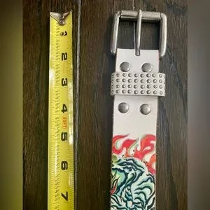 VTG White and Multi Color Ed Hardy Logo Leather Belt with rhinestones and Studs ๐ฉ