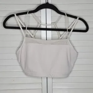 Athleta Powervita Superstrap Strappy Mesh Detail White Sports Bra MEDIUM EUC