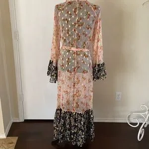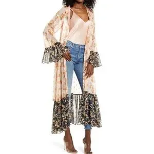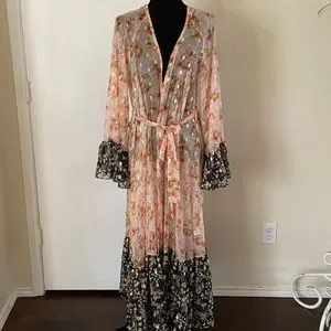 New with tags, purchased from Nordstrom. This mix print CODE X MODE Kimono can we worn as Robe or Jacket. Metallic accents highlight the mixed floral prints of a flowy longline jacket complete with dramatic bell sleeves.