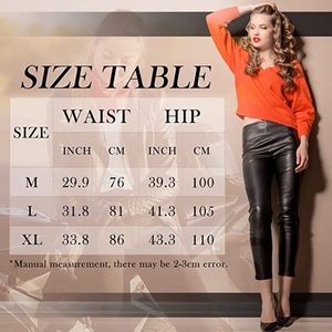 * Easy to Clean: these black faux leather pants are washable. Hand wash in cold water is recommended. Do not bleach. Can be dried naturally