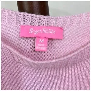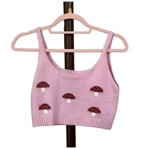 Sugar Thrillz pink mushroom cropped sweater tank top size medium (runs small)