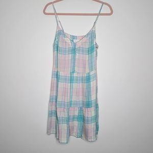 Abound Pastel Plaid Tiered Sun Slip Dress M