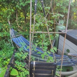 My first high end bag loved it so much. used good condition. Two excellent sized pockets, you can fit a lot. Leather fringe zipper pulls are removable. some discolouration on inside as shown, very minor mark on back as shown