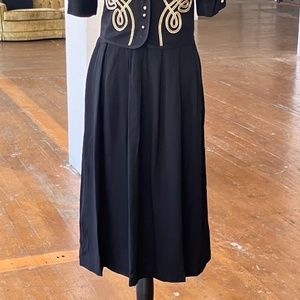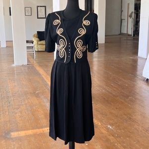 The majority of the dress is black, however the light gold comes in on the appliqué and the buttons