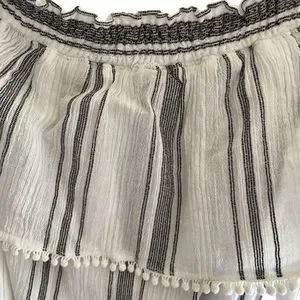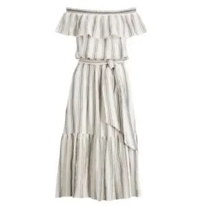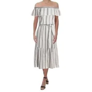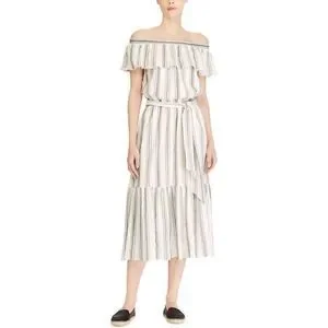 Lauren Ralph Lauren White & Black Striped Off-The-Shoulder Midi Dress