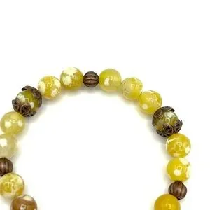 HAND CRAFTED Yellow Fire Agate Beaded Bracelet