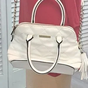 Madden Girl White Quilted-Dome Two Handle with Tassel. Excellent Condition. Pre-Loved. Approximately L 10" xH 9" x W 4". Crossbody
