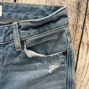 B1 — ABERCROMBIE & FITCH blue high rise destroyed girlfriend denim jeans 2R