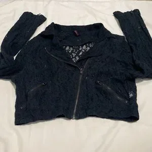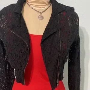 Vintage Black sheer Lace crop Biker style jacket size M