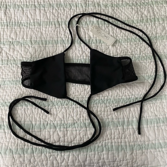 NWT ✨ KAOHS Black String Tie Top | XS. Double string tie. Back mesh detail.