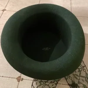 100% Wool hat with lace trim/bow. Hunter Green. Excellent condition.