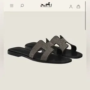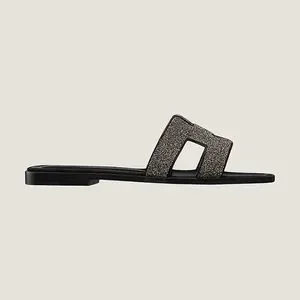 Hermes Noir Oran Goatskin Crystal Detail Sandal