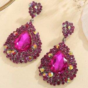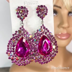 Fuchsia Pink Austrian Crystal Chandelier Earrings Prom Pageant Formal
