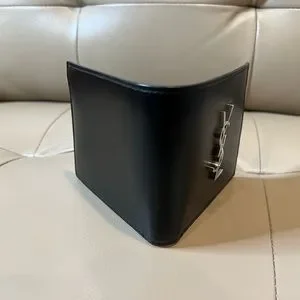 100% authentic Mens Saint Laurent wallet featuring an interlocking YSL logo at the front with a well-organized interior.