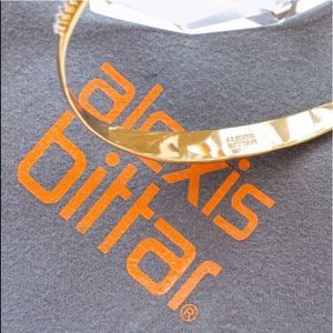 Signed Alexis Bittar Bypass Crystal Gold Leaf Cuff Bangle Bracelet in Gold