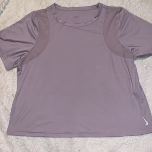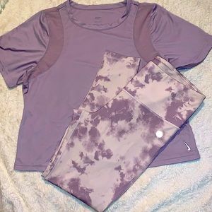 LIKE NEW NIKE CROP TOP WITH MESH DESIGN AT SHOULDER CHEST LINE SIZE SMALL BUT COMFORTABLY AS MEDIUM LEGGINGS MAX STUDIO SIZE MEDIUM TOP LIGHT LILAC OR GREY PURPLE LEGGINGS WHITE AND LIGHT LILAC GREY COLOR