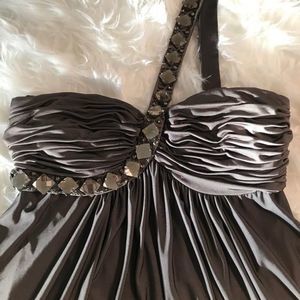 This beautiful cocktail 🍸 or special occasion dress, has so much detail and a nice built in bra!!! Has a this ombre color scheme that from the hem starts off light then turns darker. Comes from a pet and smoke free home.