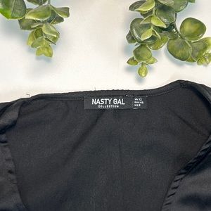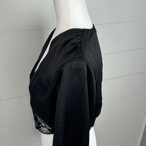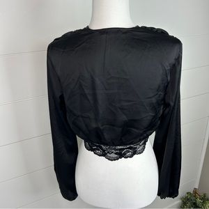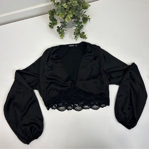Nasty Gal Lace Long Sleeve Satin Balloon Sleeve Crop Top Black Size 8